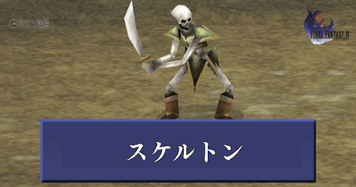 FF4(ファイナルファンタジー4)のモンスター「スケルトン」のステータスと出現場所を紹介。HPや弱点、獲得経験値や入手ギルをまとめて掲載。ドロップするアイテムや盗めるアイテムも紹介しているので、攻略の参考にどうぞ。