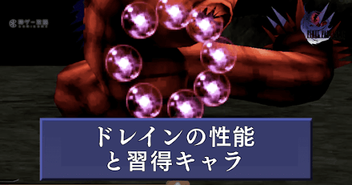 FF4(ファイナルファンタジー4)の黒魔法「ドレイン」の性能と習得キャラを紹介。習得するレベルや条件、詠唱時間、命中率も掲載しているので、黒魔法を使う際の参考にどうぞ。