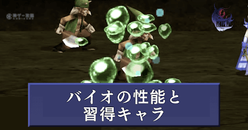 FF4(ファイナルファンタジー4)の黒魔法「バイオ」の性能と習得キャラを紹介。習得するレベルや条件、詠唱時間、命中率も掲載しているので、黒魔法を使う際の参考にどうぞ。