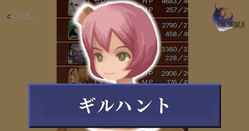 FF4(ファイナルファンタジー4)のデカントアビリティ「ギルハント」の効果と入手方法、使用おすすめキャラを紹介。ステータスの上昇値や入手条件も掲載。誰に使うのがおすすめか理由付きで紹介しているので、ギルハントを使う際の参考にどうぞ。