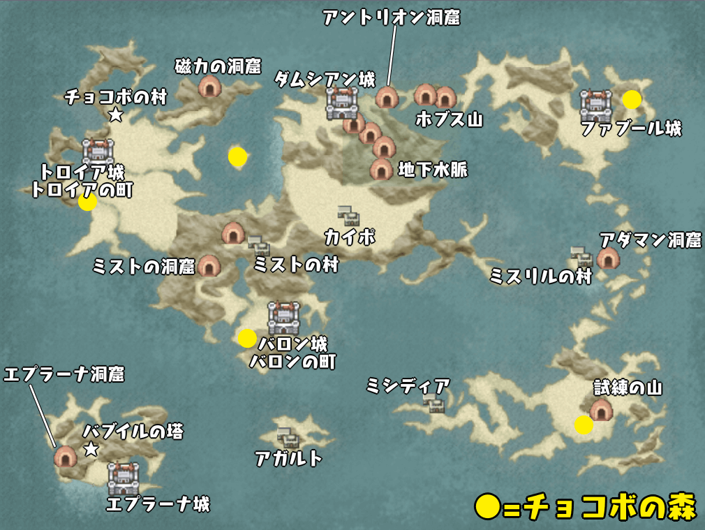 | トロイア城 | トロイアの町 | チョコボの村 |