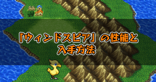 FF5(ファイナルファンタジー5)の「ウィンドスピア」の性能と入手方法について掲載。「ウィンドスピア」を盗めるモンスター、ドロップするモンスターの他、おすすめの使用方法についても掲載しているので、攻略の参考にどうぞ。