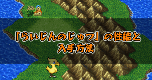 FF5(ファイナルファンタジー5)の「らいじんのじゅつ」の性能と入手方法について掲載。「らいじんのじゅつ」を盗めるモンスター、ドロップするモンスターの他、おすすめの使用方法についても掲載しているので、攻略の参考にどうぞ。