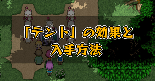 FF5(ファイナルファンタジー5)の「テント」の効果と入手方法について記載。「テント」をドロップ、盗めるモンスターすべてを掲載しているので、攻略の参考にどうぞ。