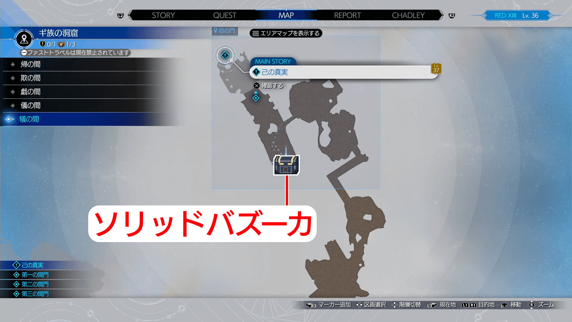 ソリッドバズーカは、チャプター10のギ族の洞窟にある宝箱から入手可能。鎖を引っ張って開ける第一の扉付近にある。