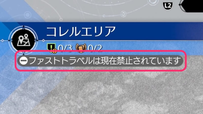 ストーリー中、ファストトラベルが禁止される場合がある。マップを開いて左上に「ファストトラベルは現在禁止されています」という表示が出ていれば、ストーリーを進めるか、少し前のセーブデータをロードしよう。