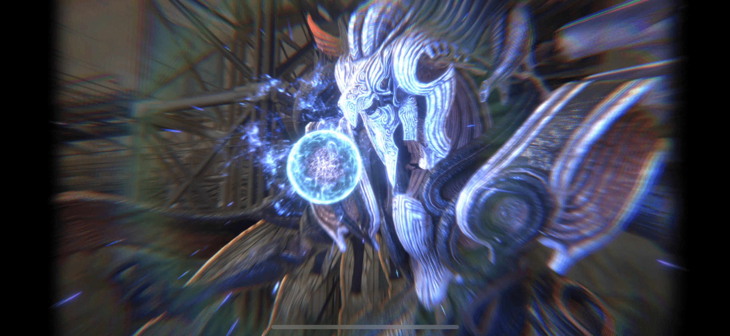 バハムート震の能力、記憶、可能性、過去、未来から選び出された現在の様子が映し出されている。 |