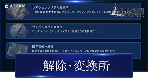 FF7エバークライシス(FF7EC)の解除・変換所の使い方について掲載。変換所で手に入るメダルの使い道についてもまとめているので、FF7ECの解除・変換所の使い方について調べる際の参考にどうぞ。