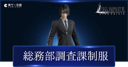 FF7EC(ファイナルファンタジーVII エバークライシス)のウェア「総務部調査課制服」の性能について掲載。ウェアのRアビリティ効果や性能についてまとめている。FF7ECで「総務部調査課制服」の性能を調べる際の参考にどうぞ。