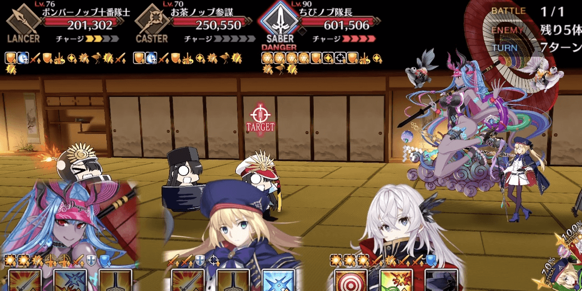 出現するノッブは、過去に登場したことのある汎用エネミーであり、特性も特別変化はしていない。なお、すべてのノッブエネミーに即死が通用しない模様。