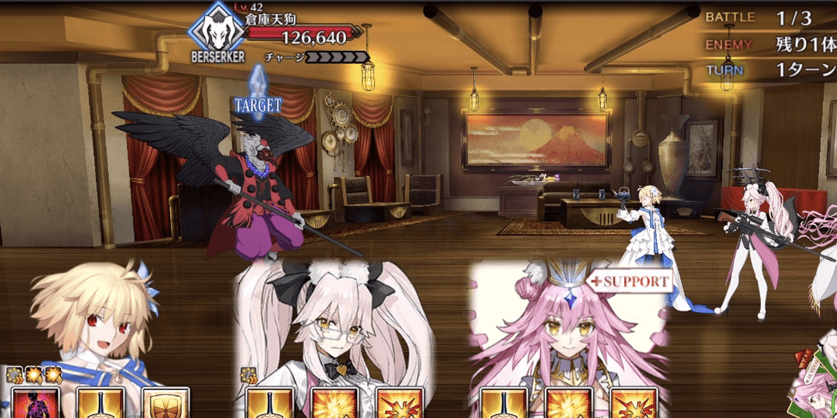 | 3戦目 | ・陳宮のNPを100%にする。 ・陳宮の宝具で突破。【使用スキル】 ┣鬼一法眼スキル3,2→陳宮 ┗魔術礼装極地スキル2→陳宮 |