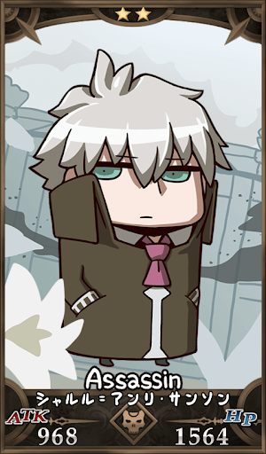 | くびきりサーヴァント セレブの首を斬る仕事をしている人。 マリー・アントワネットに足を踏まれて興奮してマリーファンクラブ会員になった。 |