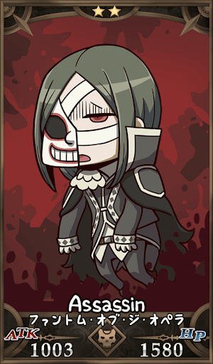 | かめんサーヴァント いつも歌っている、育てるのが難しいサーヴァント。きちんと育てないとマスターを骨にしようとするので気をつけよう。 |