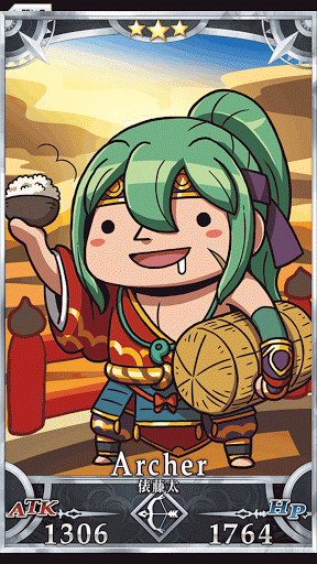 | おこめサーヴァント 本人は勇猛果敢な武士として名を馳せているのだが、何しろ無尽俵のイメージが強烈過ぎる。魔力さえ潤沢にあれば、あらゆる食料事情を即座に解決する恐ろしい力を持つ。 本人はパン派。 |