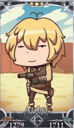 | アウトローサーヴァント 銃の名手として知られる西部開拓時代を代表する英雄のひとり。かわいい顔をして情け容赦なくヘッドショットを決めるぞ。 |
