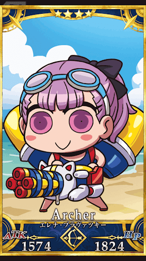 オカルトサーヴァント 水着を着たブラヴァッキー夫人。 年甲斐もなくはしゃいでいてかわいいぞ。武器から放たれるスポポポポというSEが気持ちいい。 |