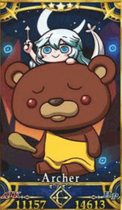 くまくまサーヴァント くまのぬいぐるみから真のムキムキ筋肉マッチョの姿に戻ったオリオンだ。中身はほぼそのままだ。アルテミスは相変わらずダーリンをシメる気まんまんだ。 |