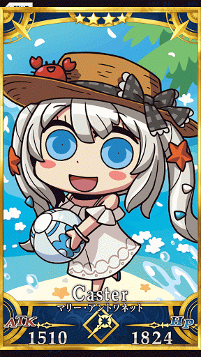 プリンセスサーヴァント 水着を着たマリー。無邪気にビーチボールで遊んでいるだけで敵がバタバタと死んでいく。宝具はもうなんだかよく分からない領域。 |
