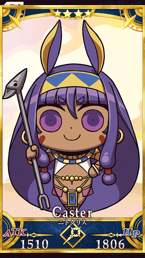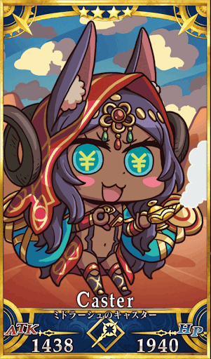 しゅせんどサーヴァント 金勘定が大好きなモフモフケモミミ女王。あらゆるビジネスチャンスを見逃さない先見の明がある。大切な人がカルデアにいると聞いて来たが見当たらないようだ。 |