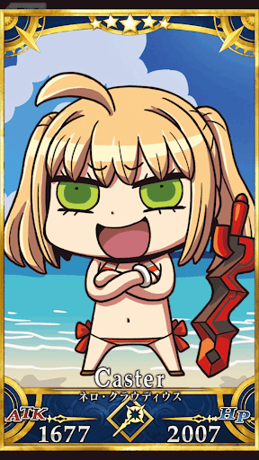 こうていサーヴァント 大胆な水着を着たネロ。水上の野外劇場で思う存分歌う姿はとても麗しいが、歌を聞いたものはみな海の藻屑と化すのだ。 |