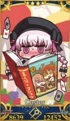 | うたよみサーヴァント カルデア図書館に住むふしぎな司書さん。本が大好きな夢みる文学少女。謎の力でついつい他人の本音を暴露してしまい人間関係に波紋を投げかけるぞ。 |