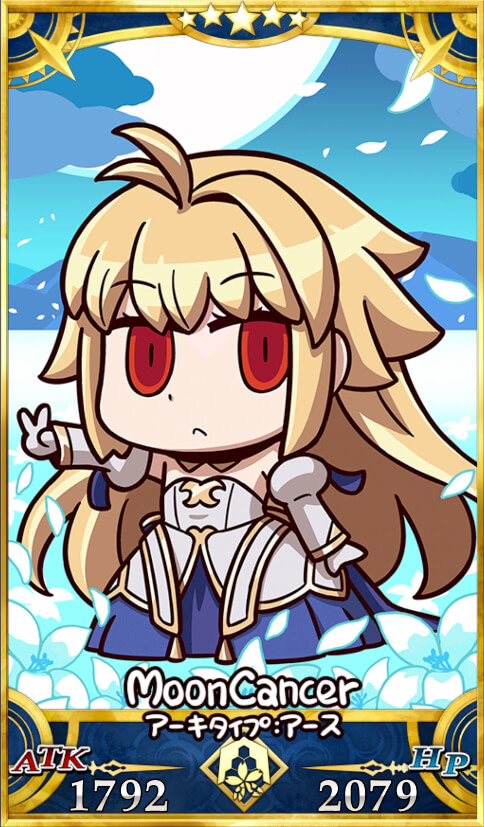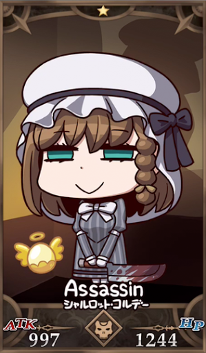 はかもりサーヴァント ちょっぴりシャイな女の子。孔明の舎弟。彼の命令ひとつで大鎌やらビームやら物騒な武器で襲いかかる。アルトリア系サーヴァントとよく間違えられるのが悩み。 |