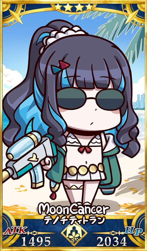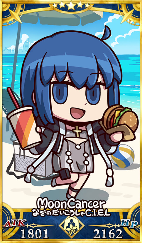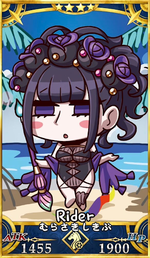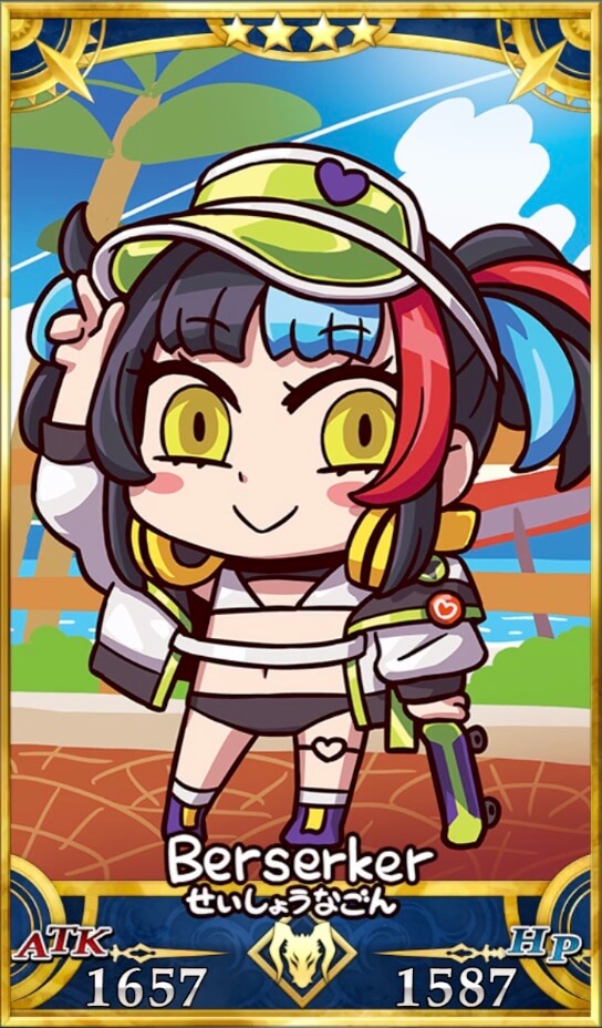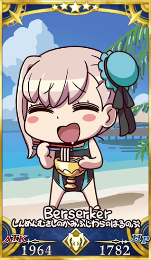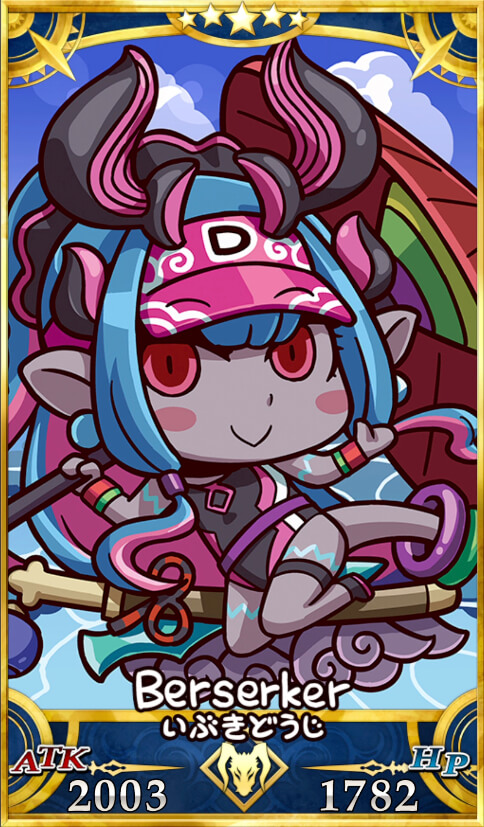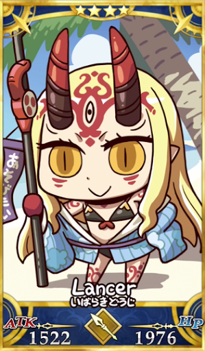 | おにサーヴァント かわいい水着姿で夏を満喫する茨木童子。普段よりは無邪気で素直なので手懐けやすいかも。おいしいものをいっぱい買ってあげたくなるぞ。 |