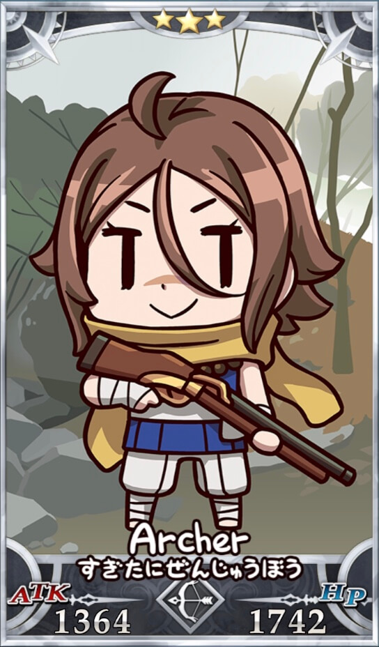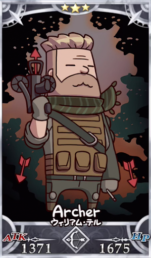 かりうどサーヴァント 頭の上のリンゴを矢で射抜いたことで今日まで語り継がれる国民的英雄。それ以外はよく分からない。具体的に何で生活している人なのだろうか。 |