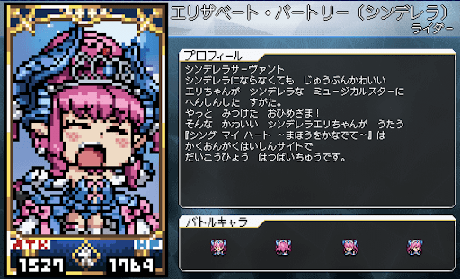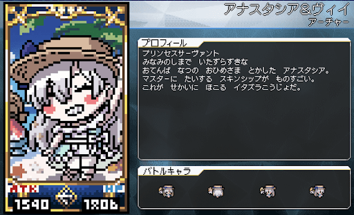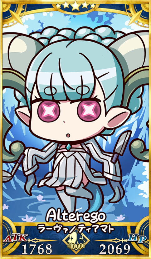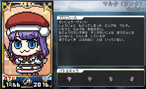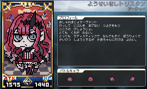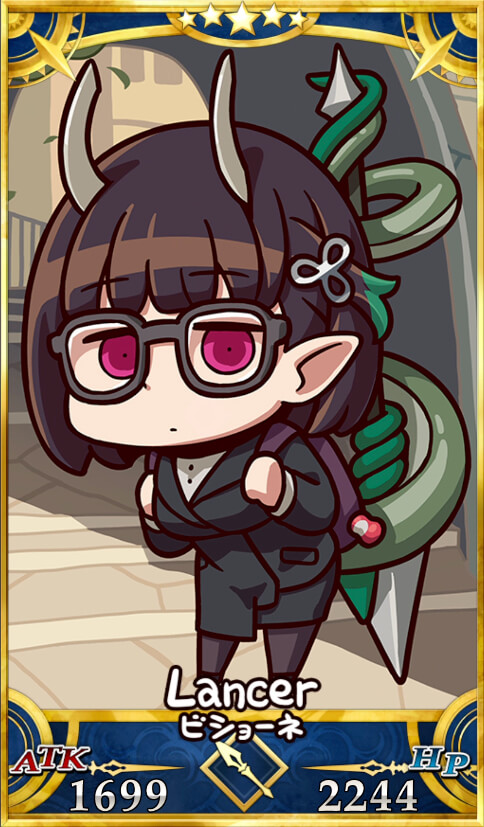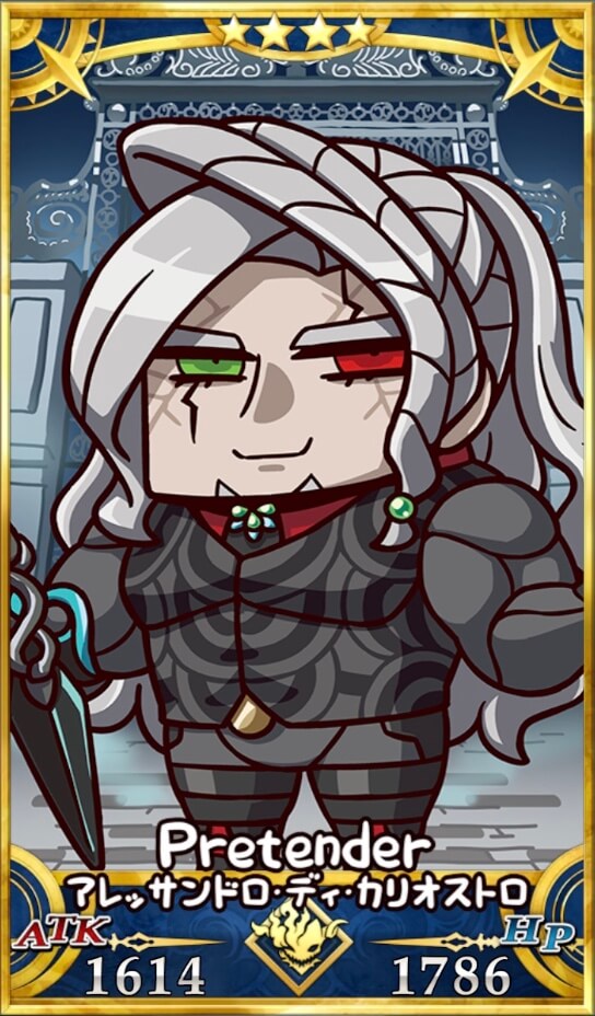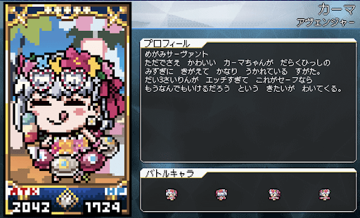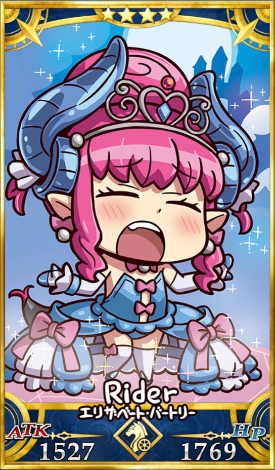 | きゅうけつサーヴァント 哀しき運命に翻弄された人間嫌いサーヴァント。存在自体が第2部3章のネタバレになっている。最愛の彼氏との再会を切望しているが……恒常だし、そのうち引けたらいいね。 |