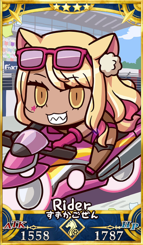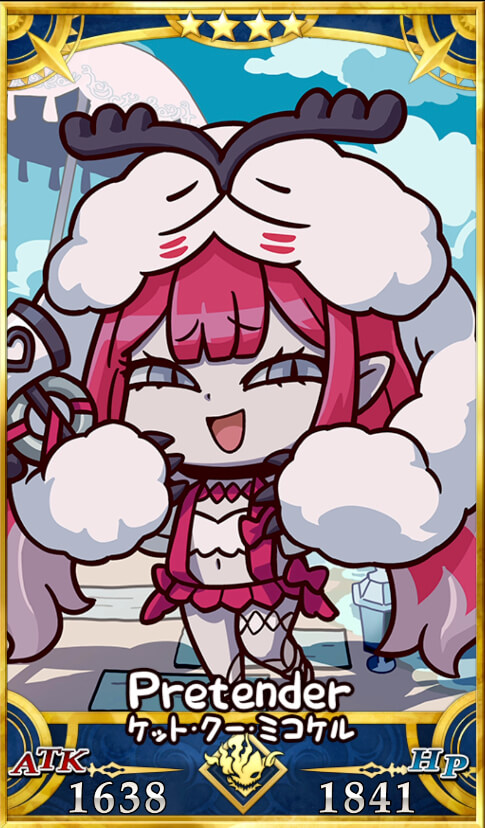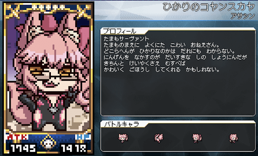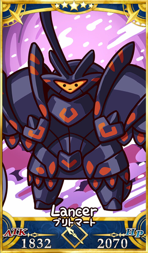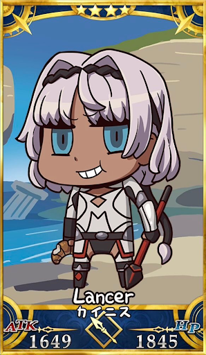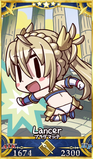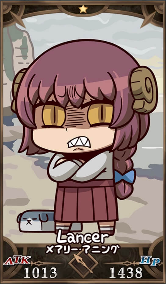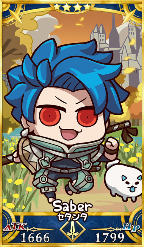どきゅんサーヴァント ちょっぴりやんちゃな暴れん坊。つねにメンチを切っており、目が合った相手はもれなく因縁をつけられ槍で突かれる。懐いたらけっこうかわいい。 |