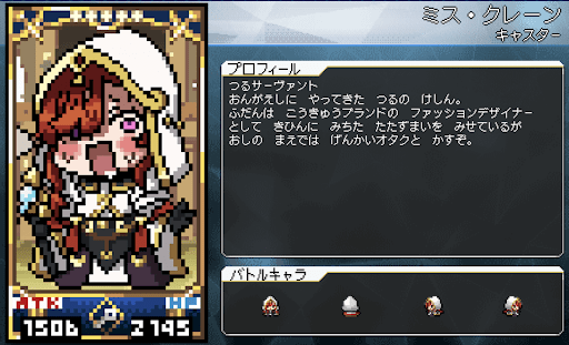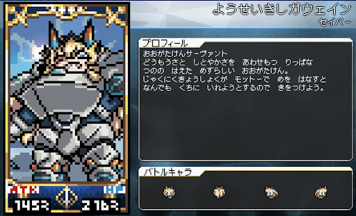 | FGOクエストでサーヴァントはドット絵での公開だったため、セイントグラフの形で公開されるのはFGOマイクラが初となる。 |
