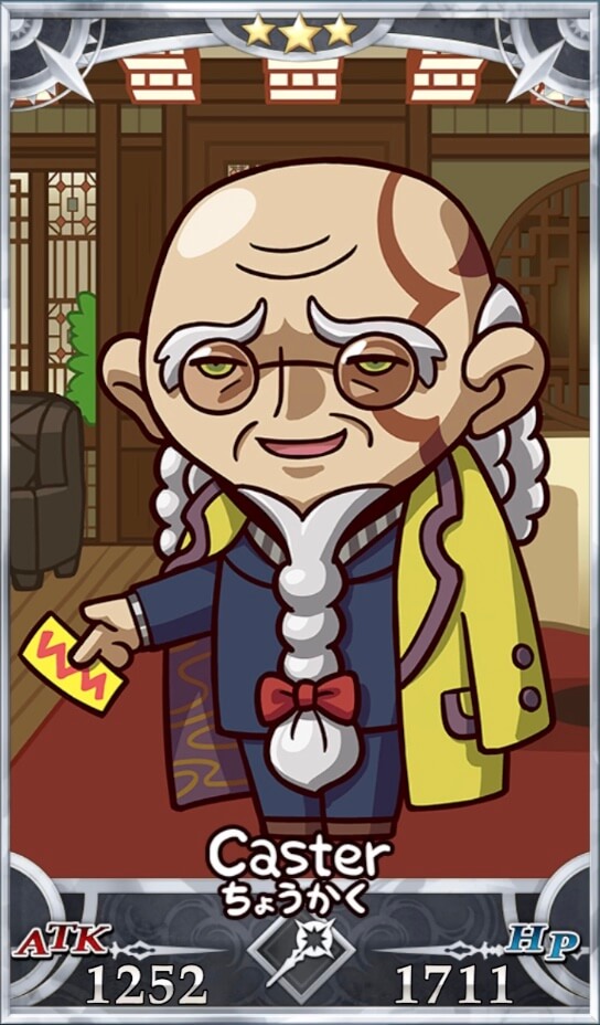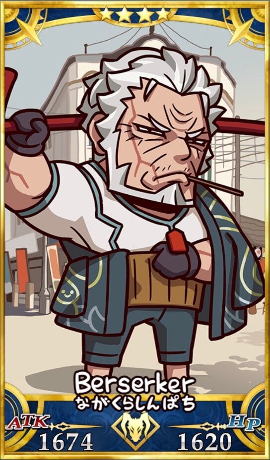 | けんぽうサーヴァント 年老いてなお元気いっぱいな拳法家のおじいさん。槍があってもなくてもヤバいという噂は本当だった。殺すだけでなく癒しのマッサージも得意だぞ。 |