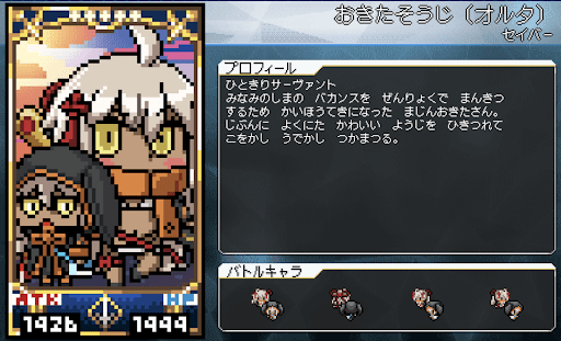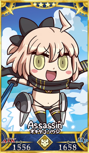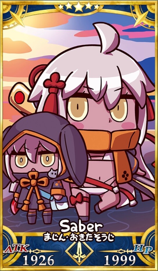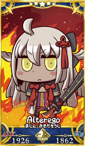 | ひときりサーヴァント 沖田総司がかっこよく進化したすがた。クールな見た目だが人懐こい。正義の味方としてパワーアップしているが、そのぶん頭が若干悪くなっているぞ。 |