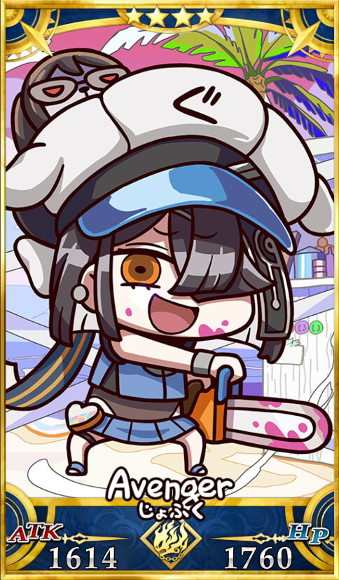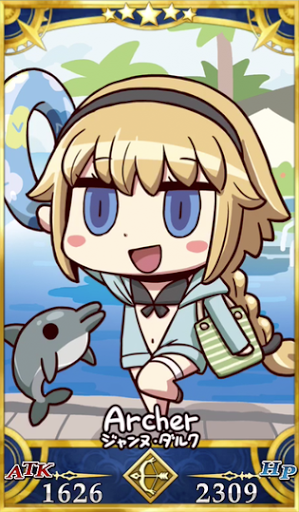 | せいじょサーヴァント 夏のビーチで開放的になったジャンヌ(長女)。海の生き物たちを自在にあやつり武器として発射してくるぞ。若干狂気が入っている気がする。 |