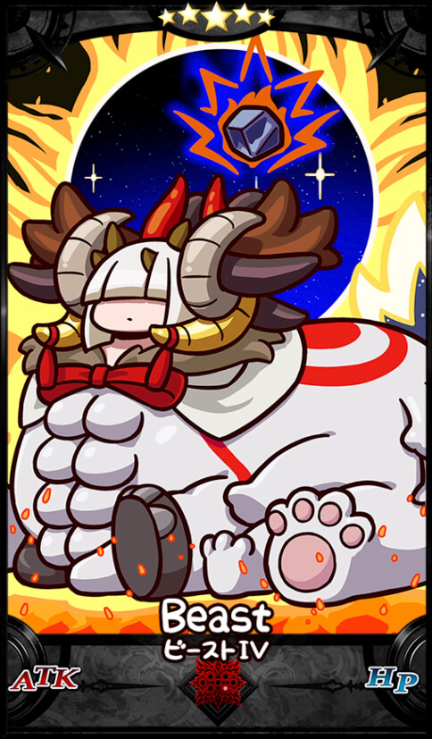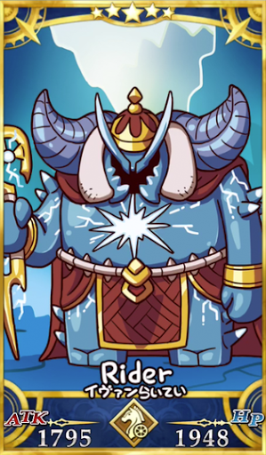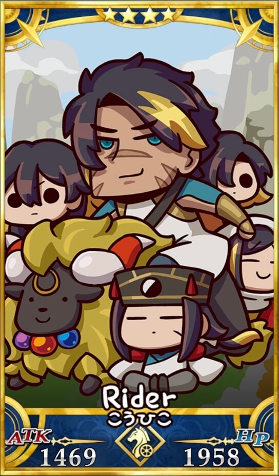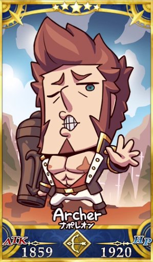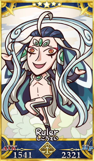 | こうていサーヴァント 天下統一を成し遂げてしまった朕の国の皇帝。最初は無骨で動きが鈍そうな巨体だが最終形態はスリムな細マッチョという少年漫画でよくある変身系ラスボスだ。 |