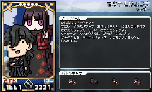 | ひときりサーヴァント 敵の剣技を吸収してコピーする能力がある。やさぐれているが真面目な性分のためか周囲からよくいじられている。犬みたいでかわいい。 |