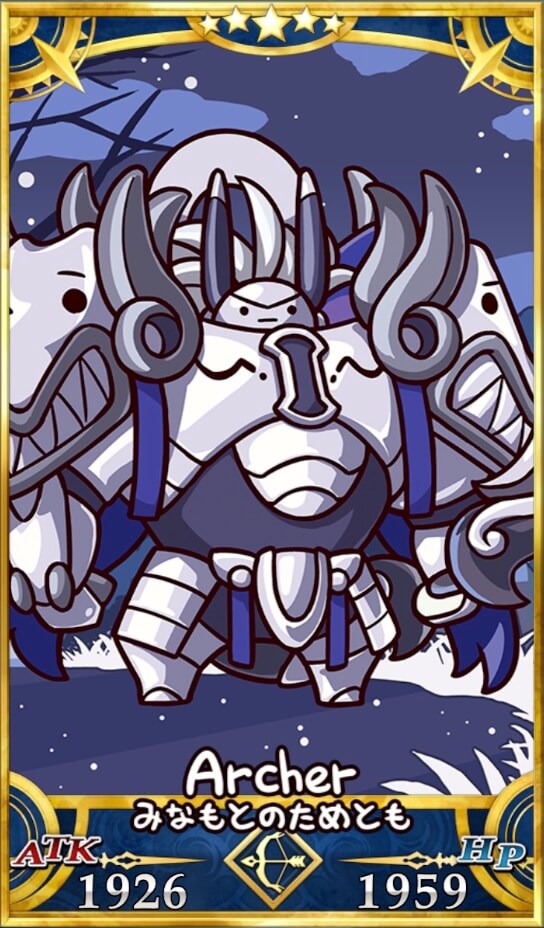 | こうていサーヴァント 困っていれば駆けつけるあなただけのスーパーヒーロー。不可能なことがない。その逞しい容姿には生前のコンプレックスが如実に反映されている。 |