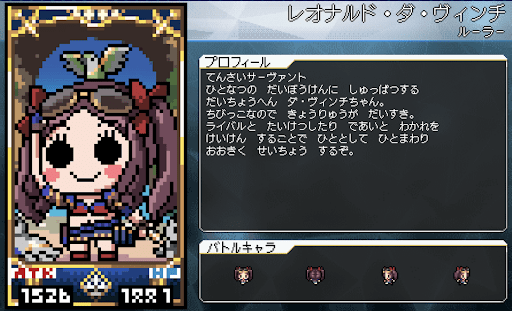 ぐんしサーヴァント 冷酷サディスティック軍師兼マッドサイエンティスト。勝つためには多少のえげつない手段も厭わない。味方の人材を最大限に有効活用するのが大得意。 |