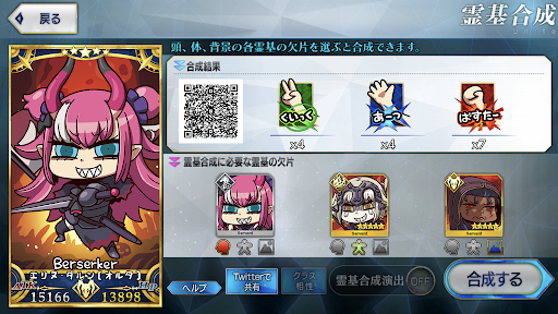 ガチャやクエスト報酬で目当てのパーツを入手できない時は、Twitterなどに投稿されているQRコードから合成サーヴァントを読み込もう。パーツを得るにはクエストに勝利する必要があるが、一度でも勝てば合成パーツを得られる。