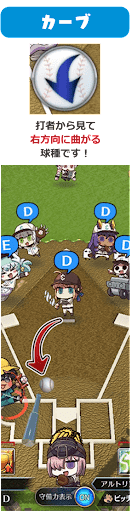 ピッチャーは4つの球を使い分けられるので、打たれてもアウトになる可能性の方向へ飛ぶようなコースに投げ込もう。ストレートとチェンジアップはセンター方向へ、カーブはレフト、シュートはライト方向に飛びやすい。