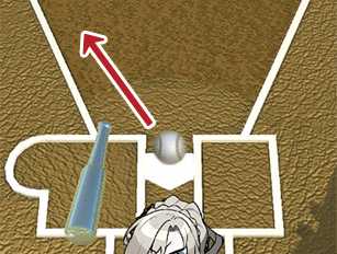 試合会場の後ろにある青いパネルに打ったボールが当たるように、ボールをバットに当てよう。青いパネルに書かれた数字の分だけ、ベースを進める。なお、赤いパネルに当たると、アウトになって点が一切入らない。