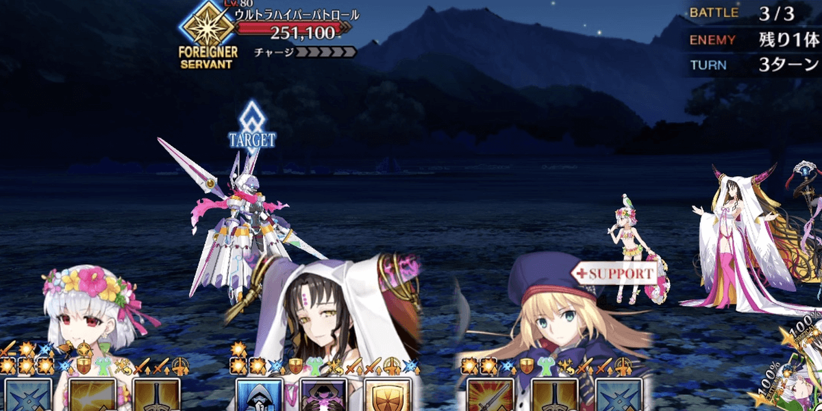 | 概要 | ・魔術礼装はオダチェン礼装であれば代用可 ┗スキルレベルの高いもの推奨 ・確殺に花畑スキルやクラススコアが欲しい ┗編成条件に花畑とスコア無しの場合のレベルを記載 |