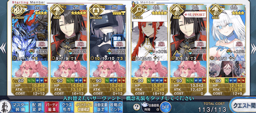 | 魔獣型や非ヒト科のキャスターで編成して消耗を減らす ・玉藻の前はどちらの特性も持つため非常に頑丈 |