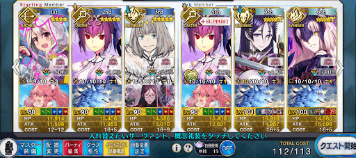 | 編成 | ポチ数 | 絆礼装枠 |