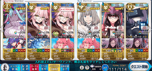 | サーヴァント | 取り巻き | ボス(3回分) | 編成条件 |