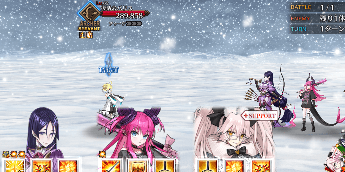 | 敵ギミック | ・敵はガッツ3回所持 ・ガッツ発動時チャージ3増加 ・1度撃破した後、体力が全回復 |