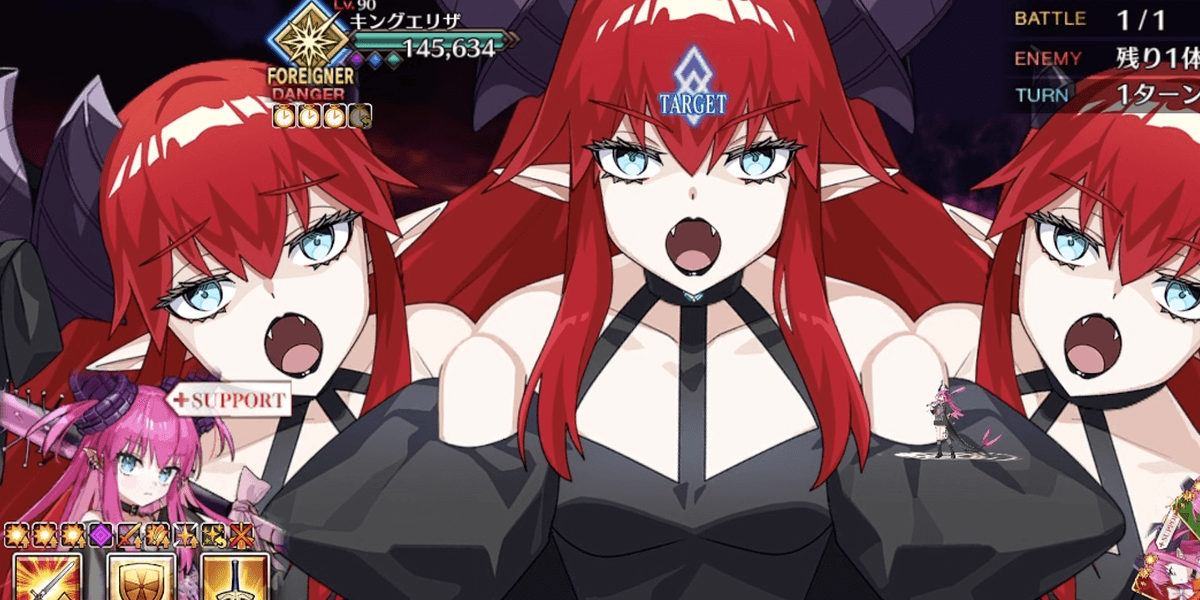 | ギミック | ・NPCエリザに複数のバフ&デバフ ┣解除不可の宝具封印状態持ち ┗ 攻撃力アップ&クリ威力アップなどのバフ持ち |