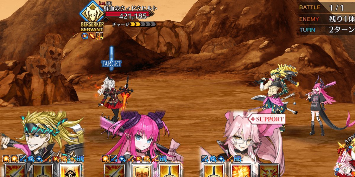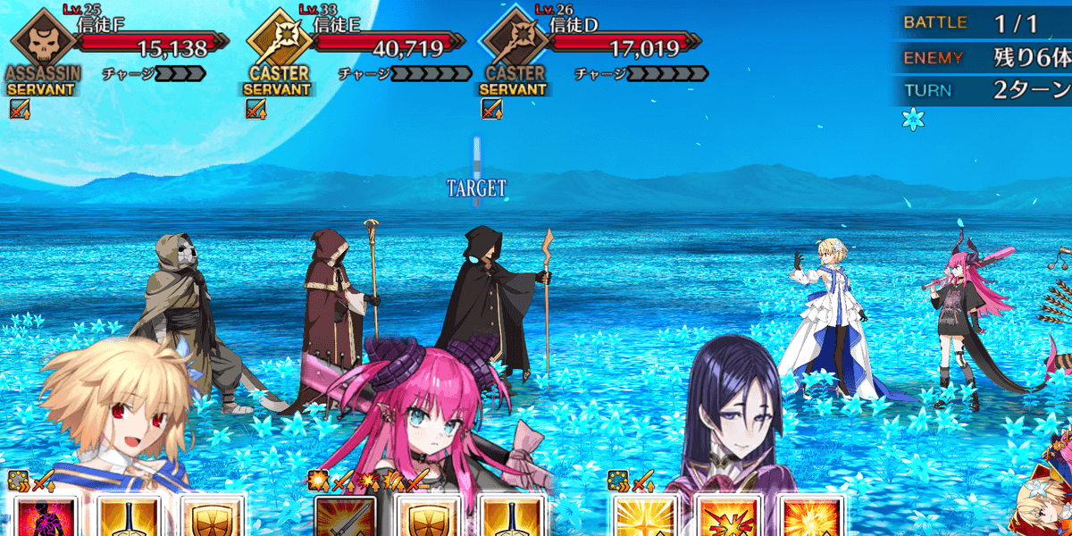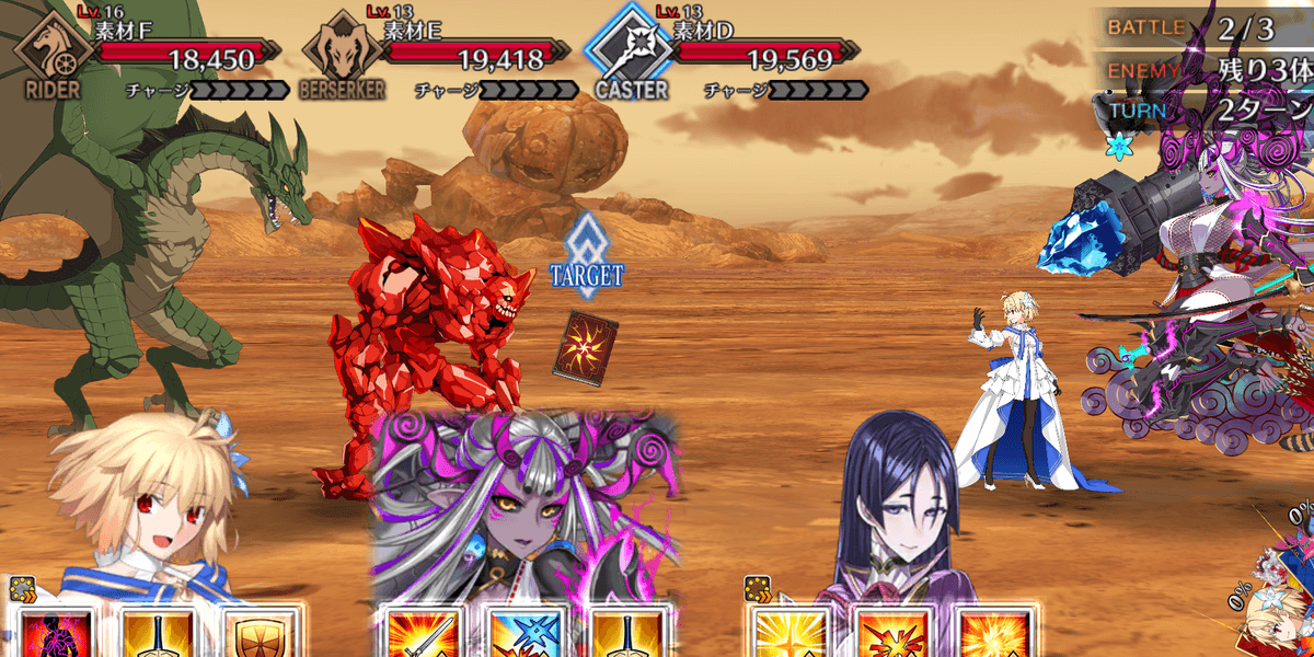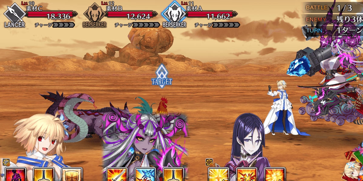 | ギミック | ・敵は解除不可の防御&クリバフ持ち ・ブレイク後、解除不可の必中&宝具バフ所持 |
