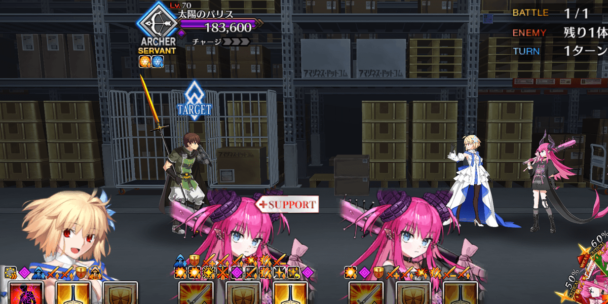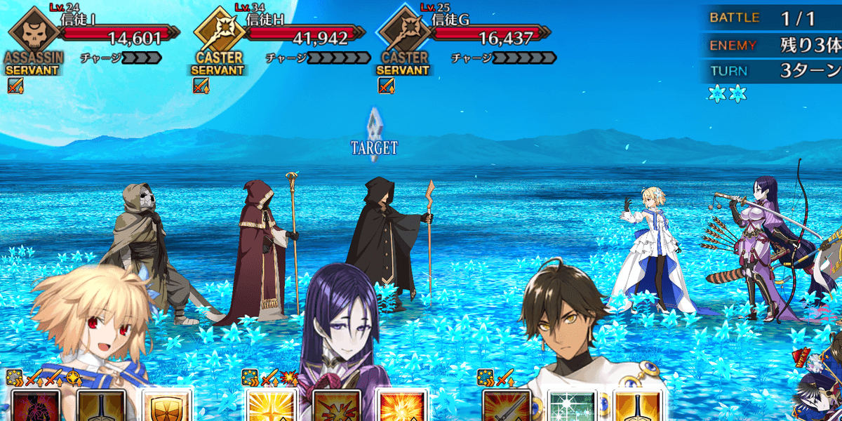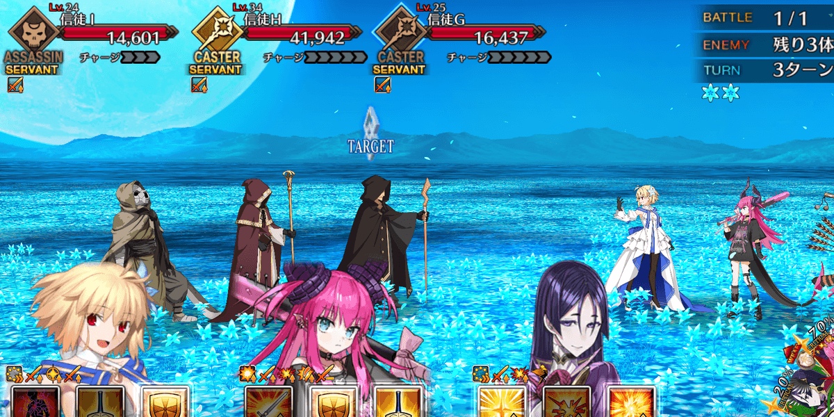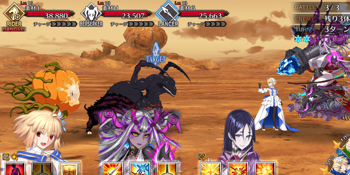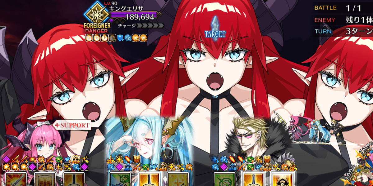 | ギミック | ・敵は解除不可の防御&クリバフ持ち ・ブレイク後、解除不可の必中&宝具バフ所持 |