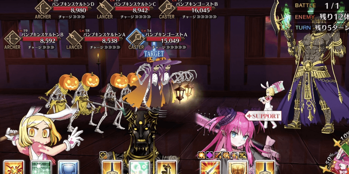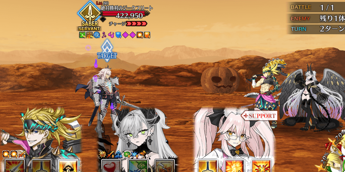 【強化内容】 ・宝具強化[E-]→[D] ・宝具火力アップ ・敵全体にハッピーハロウィン状態を付与が追加(3T) ・自分フィールドをハロウィンに変更が追加(3T) ・味方全体のクリ威力アップ(3T)が追加【絆】 815 【ドロップ】 |